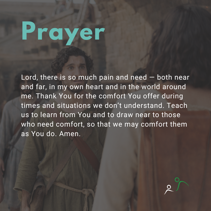 Lord, there is so much pain and need — both near and far, in my own heart and in the world around me. Thank You for the comfort You offer during times and situations we don’t understand. Teach us to learn from You and to draw near to those who need comfort, so that we may comfort them as You do. Amen.