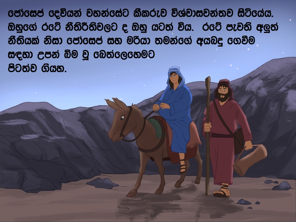 මෙම සැලසුම අපට ලබා දීම ගැන අපි Bible for Children, Inc. ට ස්තූති කිරීමට කැමැත්තෙමු. වැඩි විස්තර සඳහා, කරුණාකර පිවිසෙන්න: bibleforchildren.org/languages/sinhalese/stories.php