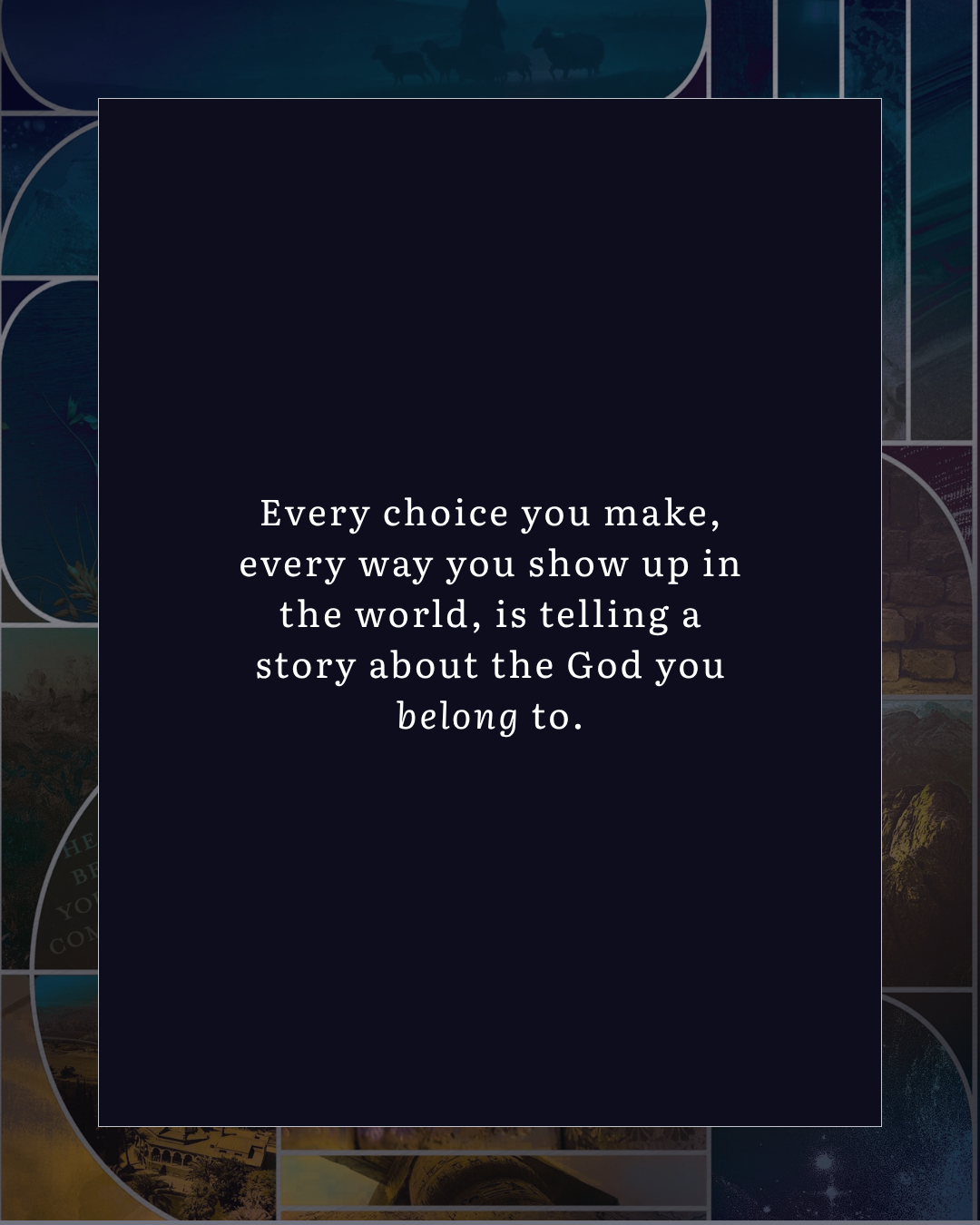 Take these words to heart as someone who has given allegiance to King Jesus, and remember that every choice you make, every way you show up in the world, is telling a story about the God you belong to. The only questions are: What message is your life communicating? Is it the message you want to be sending?