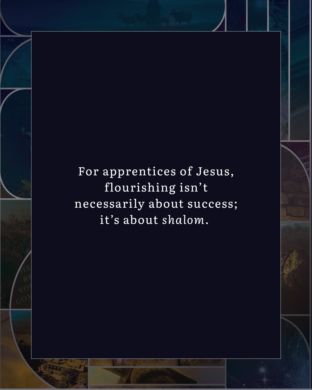 For apprentices of Jesus, flourishing isn’t necessarily about success; it’s about shalom. Shalom is the deep well-being that comes when our relationships with God, others, ourselves, and creation are rightly ordered. It’s wholeness. Harmony. Life as it was meant to be. So, we might ask, Is this relationship moving toward wholeness? Is this task contributing to peace? Is this decision cultivating life? Is this home—or team, or neighborhood—flourishing? Is this place becoming more whole because I’m here?