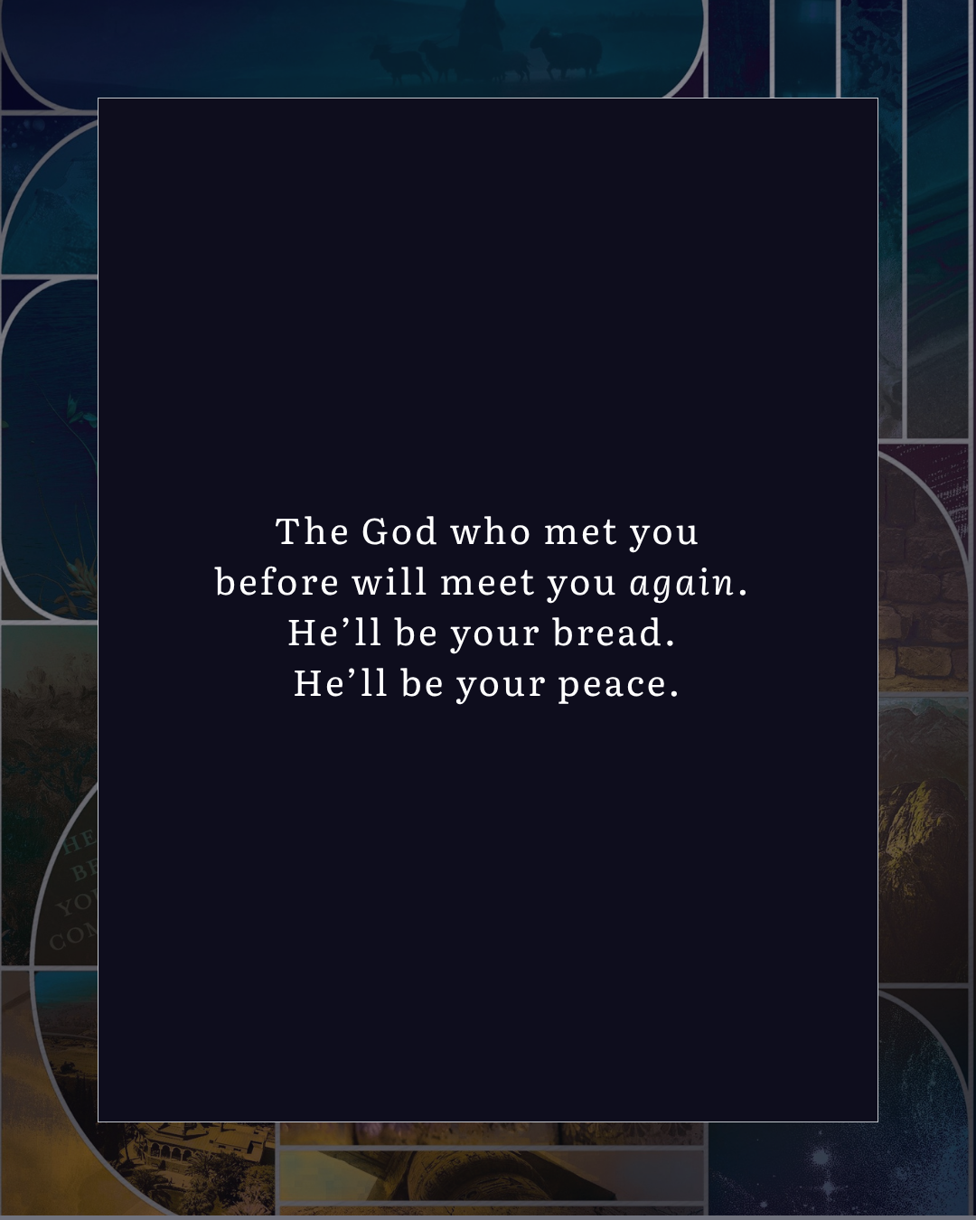 None of us can see the future. But we can face it with confidence—not because we’ve figured it out, but because we remember who has been with us all along. The God who met you before will meet you again. He’ll be your bread. He’ll be your peace.