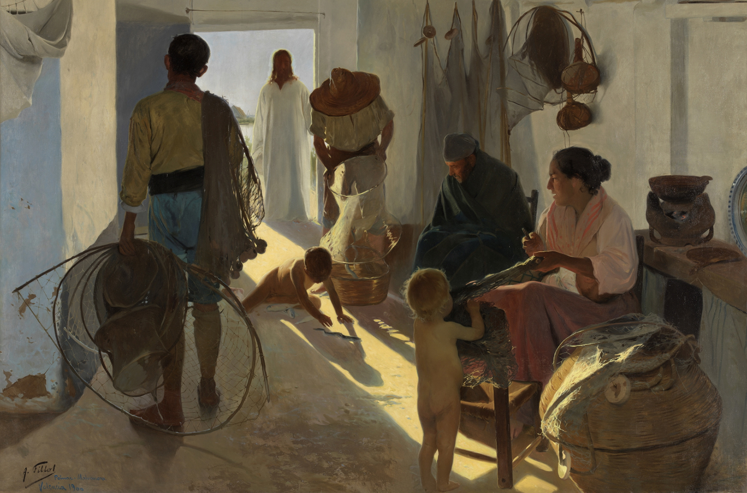 Jesus liked to hang out with his friends. He often visited his friends Mary, Martha, and Lazarus. He would come to their home to eat with them and enjoy conversation (as he appears to have just done in the home of the poor family of fishermen in the painting by Granell—did they serve him fish or eels?) Jesus took time from his great mission to be with his friends. Actually, it would be more accurate to say the point of his mission was to be with friends.