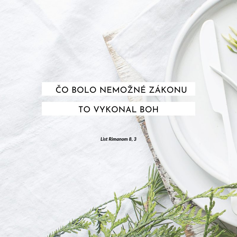 Slabosťou zákona je to, že nás nemôže zachrániť. Môže odsúdiť, môže nám ukázať správny spôsob života, ale nemôže nám pomôcť, keď niečo pokazíme. To je dôvod, prečo sa Ježiš narodil, dospel a žil ako človek a vo všetkých oblastiach kvôli nám dokonale naplnil zákon. Trpel a zomrel, aby zaplatil pokutu za porušovateľov zákona ako som ja a ty. Ježiš pre nás urobil to, čo zákon nemôže: ponúkol nám spásu.