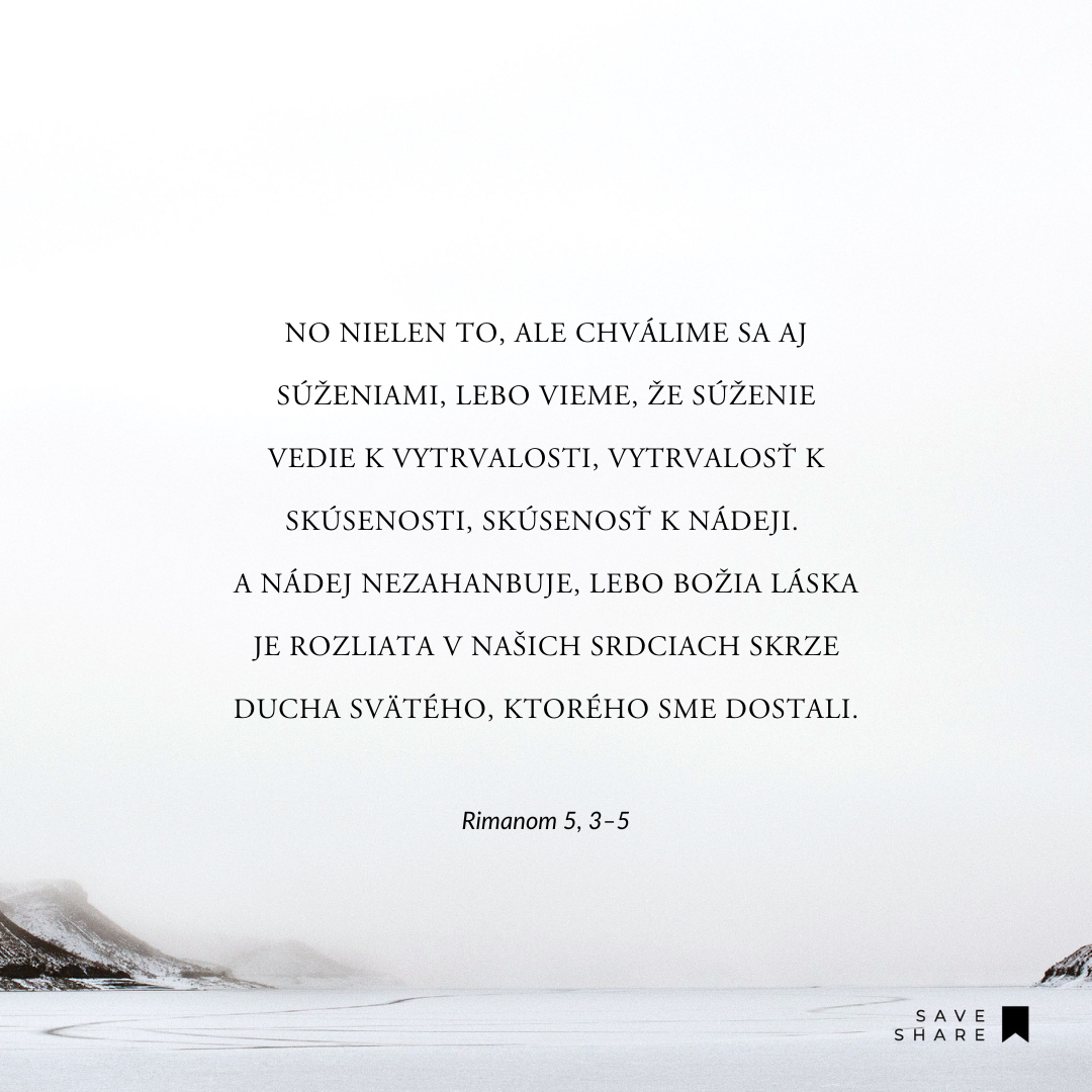 Nádej nám zároveň pripomína pravdu o Božom charaktere a prísľub Jeho prítomnosti, lásky, dobroty, zaopatrenia, súcitu, spravodlivosti a starostlivosti. Keď kráčame v nádeji, môžeme žiť každý deň s radosťou a pokojom bez ohľadu na okolnosti.