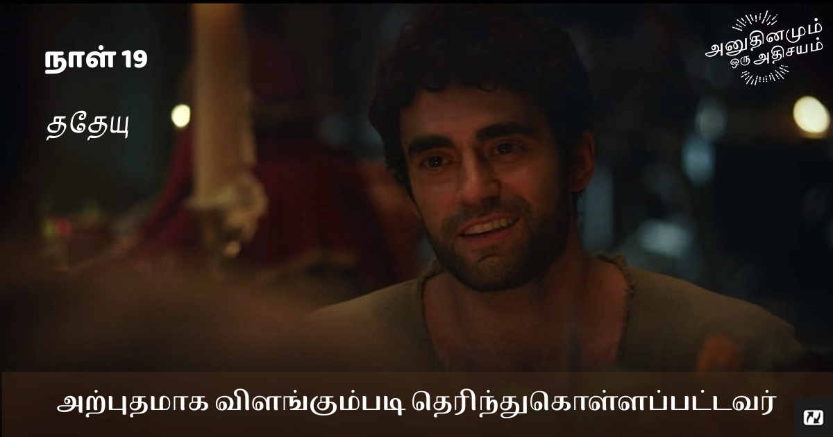 குறிப்பு: அன்பரே, நீயும் ஒருவேளை உன் வாழ்க்கை மிகவும் சாதாரணமானது என்று நினைக்கலாம் அல்லது முக்கியமற்றதாக உணரலாம். ஆனால் நீ தேவனுக்கு முக்கியமான ஒரு நபர், உன் வாழ்க்கைக்கான திட்டங்களை அவர் வைத்திருக்கிறார். வேதாகமம் சொல்வதை நினைவில் வை: “ஞானிகளை வெட்கப்படுத்தும்படி தேவன் உலகத்தில் பைத்தியமானவைகளைத் தெரிந்துகொண்டார்; பலமுள்ளவைகளை வெட்கப்படுத்தும்படி தேவன் உலகத்தில் பலவீனமானவைகளைத் தெரிந்துகொண்டார்” (1 கொரிந்தியர் 1:27) கர்த்தருடைய ஒளியால் பிரகாசிக்க நீ தெரிந்துகொள்ளப்பட்டாய்! இந்த ஒளியைப் பகிர்ந்துகொள்ளவும், ததேயு செய்ததைப் போல உன் நண்பர்களுக்கும் இயேசுவைப் பற்றி சொல்லவும் நான் உன்னை உற்சாகப்படுத்துக்கிறேன். உன் அழைப்பிற்காக பல "யாக்கோபுகள்" காத்திருக்கிறார்கள்!