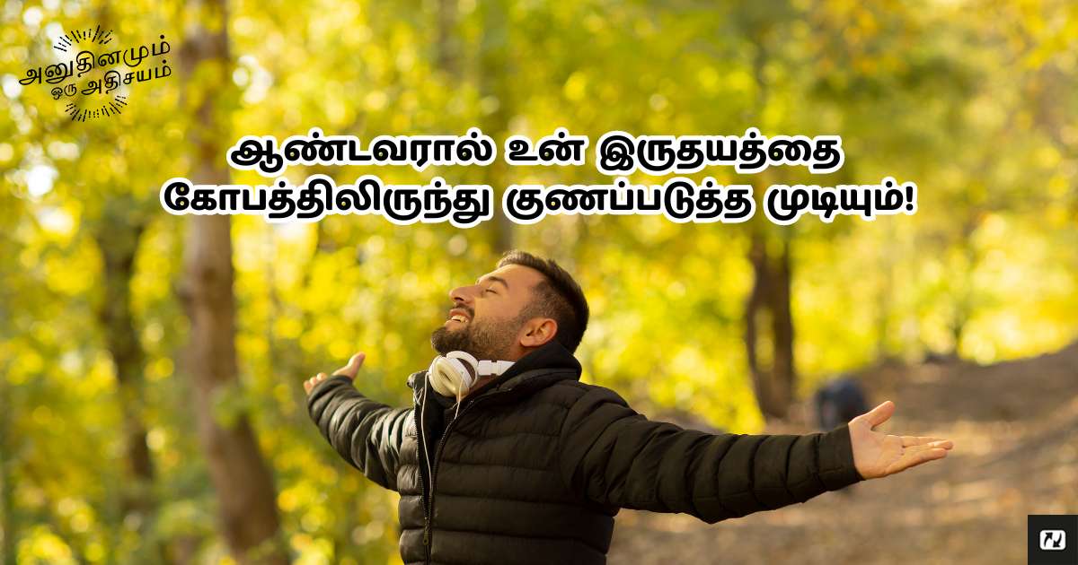 கூடுமானால், என்னுடன் சேர்ந்து இந்த ஜெபத்தை ஏறெடுப்பாயா... "ஆண்டவரே நீர் எனக்குத் தேவை. என் இருதயத்தை கோபத்திலிருந்து குணமாக்கும்; என் எண்ணங்களைத் தூய்மைப்படுத்தும். என் வாழ்க்கையையும் என் ஆத்துமாவையும் கரிசனையோடு கவனித்துக்கொள்வதற்கு நன்றி. என்னை முழுமையாக குணமாக்குவதற்கு நன்றி! உமது நாமத்தில் ஜெபிக்கிறேன், ஆமென்."