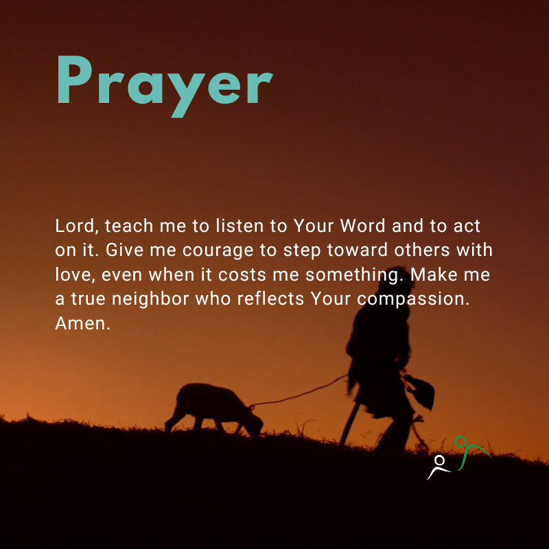 Lord, teach me to listen to Your Word and to act on it. Give me courage to step toward others with love, even when it costs me something. Make me a true neighbor who reflects Your compassion. Amen.