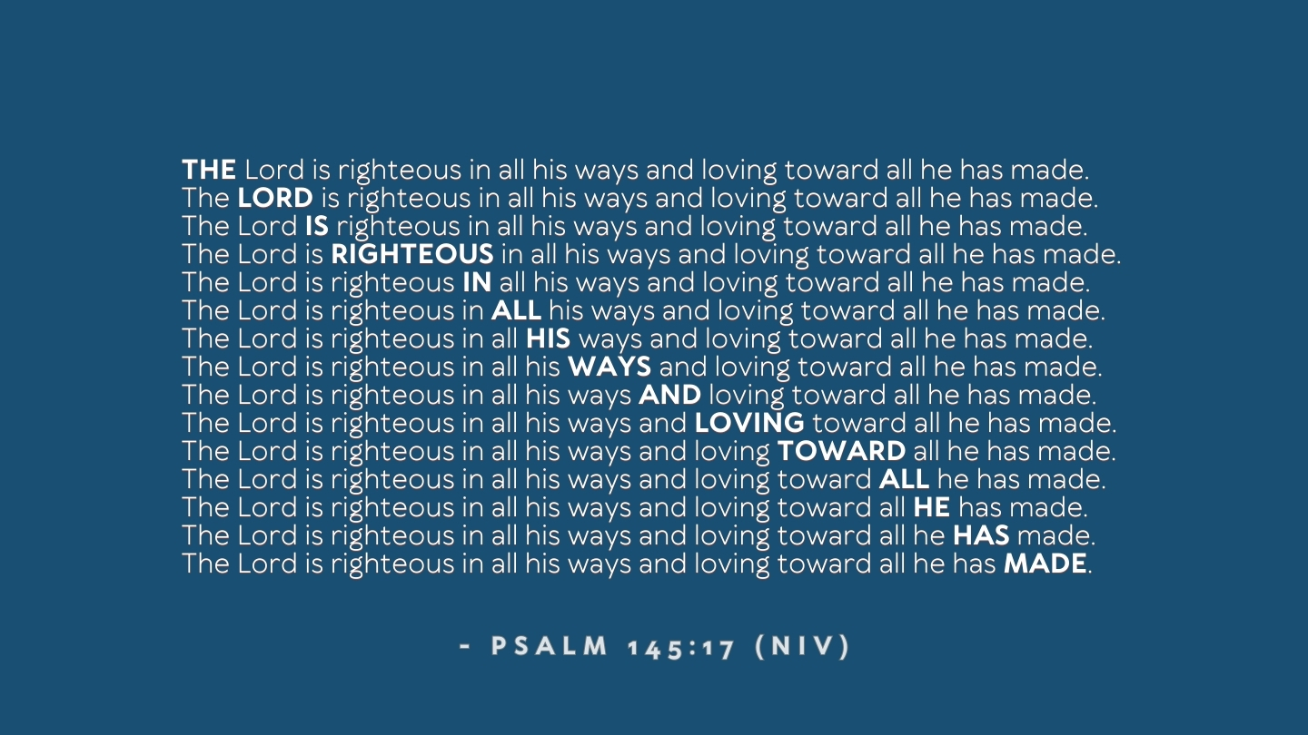 "The Lord is righteous in all his ways and faithful in all he does" (Psalm 145:17, NIV).