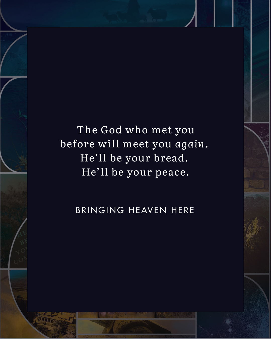 None of us can see the future. But we can face it with confidence—not because we’ve figured it out, but because we remember who has been with us all along. The God who met you before will meet you again. He’ll be your bread. He’ll be your peace.