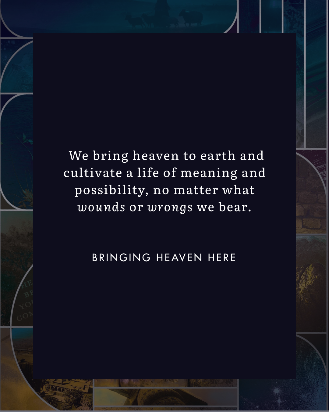 If so, name it. Then do what you can to respond: pray, confess, reach out, release. The action doesn’t have to be big. Just don’t wait too long. No more suppressing pain or letting anger echo through your life. No more living in bondage, obsessing over “what they did.” In his kingdom, we free ourselves by freeing others and unleash radical healing. We bring heaven to earth and cultivate a life of meaning and possibility, no matter what wounds or wrongs we bear.
