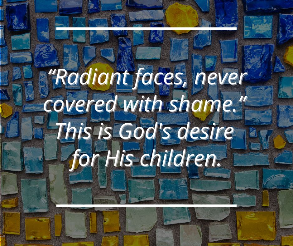 "Radiant faces, never covered with shame." This is God's desire for His children. Not because we're perfect, but because His love is perfect. Not because we have no reason for shame, but because His grace is greater than any reason shame might offer.