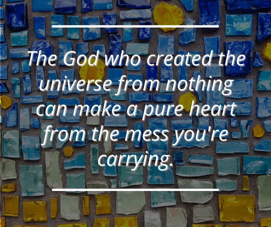 You might feel too stained for cleansing, too broken for repair, too far gone for redemption. But the God who created the universe from nothing can make a pure heart from the mess you're carrying.