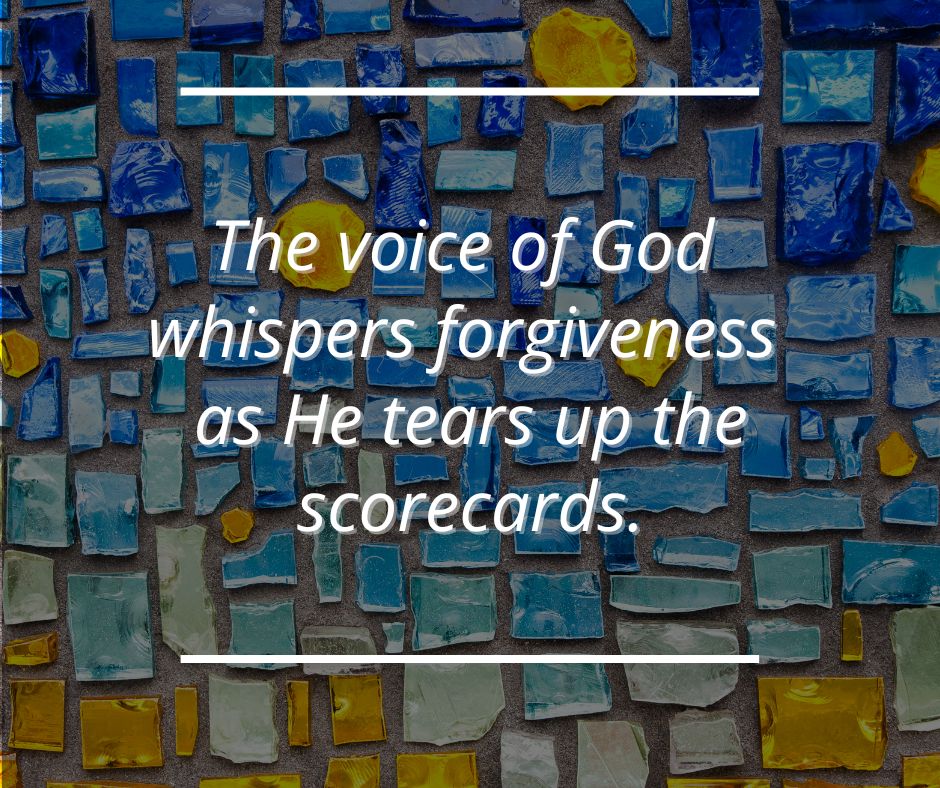 The voice of shame shouts accusations and keeps detailed records, while the voice of God whispers forgiveness and tears up the scorecards.