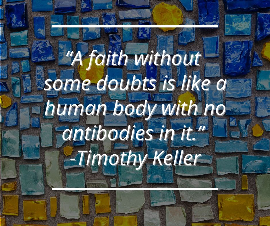 During that time, I learned that faith isn't the absence of doubt; faith is wrestling with God in the presence of doubt. Before his death, Timothy Keller wrote powerfully about how to respond to doubt as a follower of Jesus.