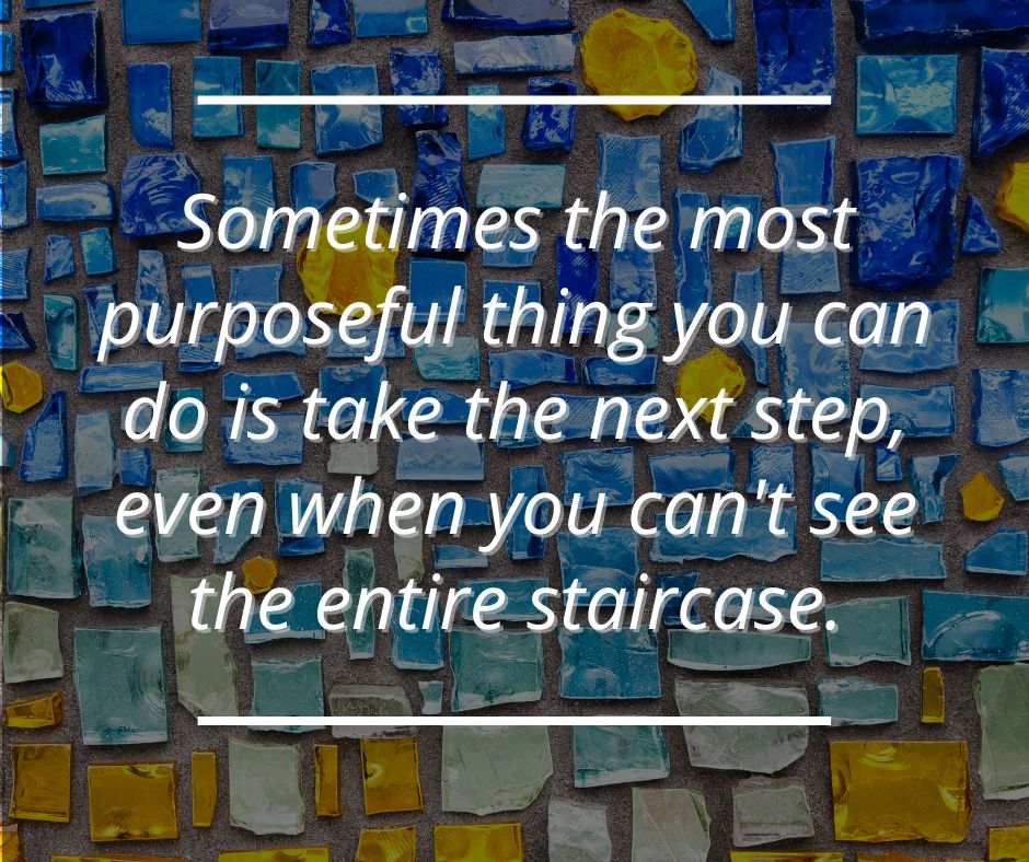 Sometimes the most purposeful thing you can do is take the next step, even when you can't see the entire staircase. Taking that step is not something you’ll be able to do alone, which is why I’m sharing tomorrow about the kind of support you’ll need to pursue your God-given purpose.