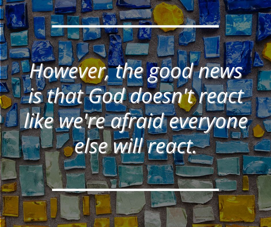 However, the good news is that God doesn't react like we're afraid everyone else will respond.