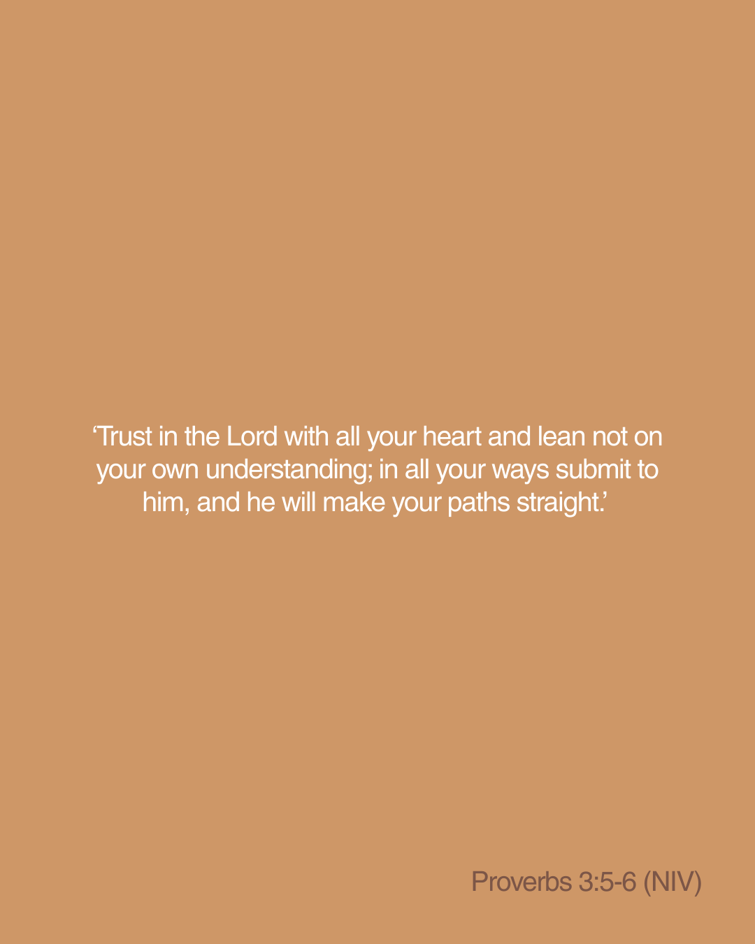 ‘Trust in the Lord with all your heart and lean not on your own understanding; in all your ways submit to him, and he will make your paths straight.’ – Proverbs 3:5-6 (NIV)