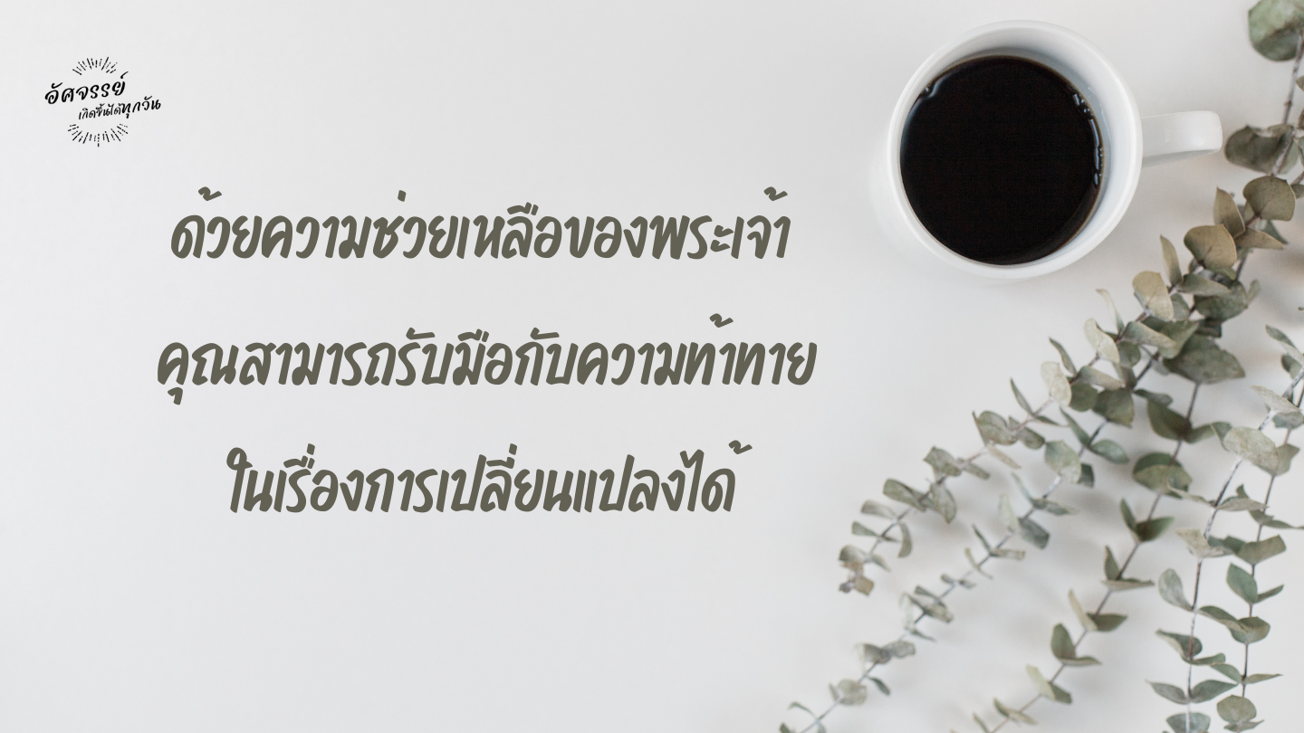 - เชื่อ ด้วยสุดใจของคุณว่า องค์พระผู้เป็นเจ้ากำลังเปลี่ยนแปลงคุณทุกวัน