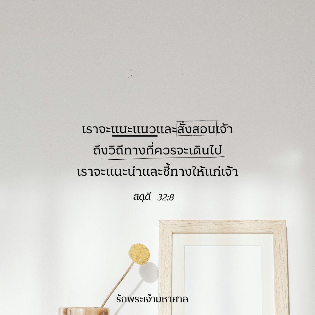 การอธิษฐานไม่ใช่เพียงการนำคำขอของเราไปขอต่อพระเจ้าเท่านั้น แต่ยังเป็นการแสดงออกถึงความอ่อนน้อมถ่อมตนและการยอมจำนน เป็นการตระหนักว่า เราต้องการพระเจ้าในทุกย่างก้าวที่เราเดิน สดุดี 32:8 เตือนเราว่า พระเจ้าสัญญาที่จะสั่งสอนและนำทางเรา พระองค์คอยเฝ้ามองเราด้วยความรัก แต่สิ่งแรกที่เราต้องทำ คือ หันไปหาพระองค์และขอความช่วยเหลือ เมื่อเราอธิษฐาน เรากำลังยอมรับว่า เราพึ่งพาพระองค์ เปิดใจของเราเพื่อรับการนำทางจากพระปัญญาของพระองค์ แทนที่จะใช้ความเข้าใจที่จำกัดของเราเอง