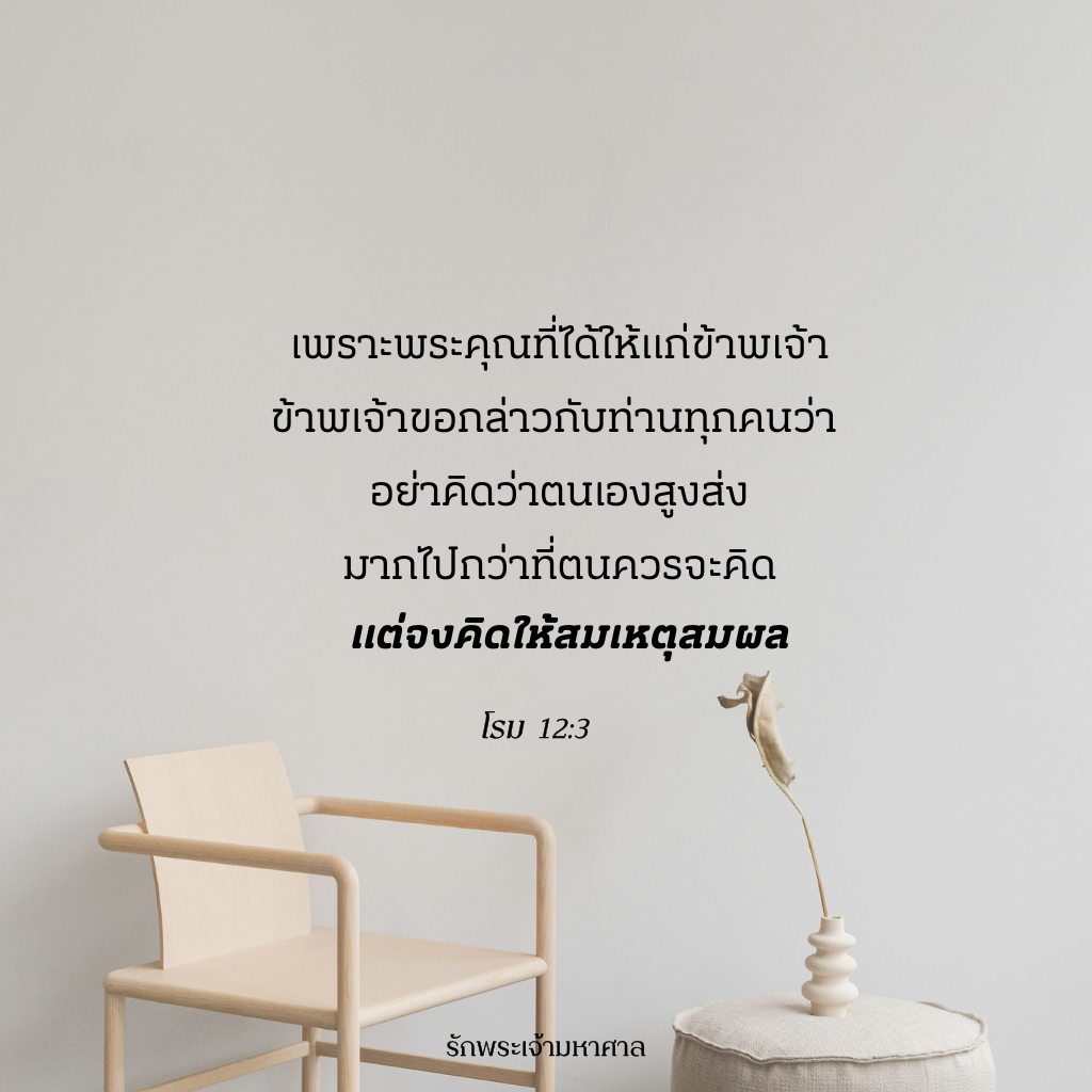 ลงลึกในพระคำ ความถ่อมตน คือ การตระหนักรู้ว่า เราเป็นใครเมื่อเทียบกับพระเจ้า และเข้าใจว่า เราไม่สมควรได้รับอะไรเลยด้วยตัวของเราเอง ในโรม 12:3 เปาโลเรียกร้องให้เราใช้ชีวิตอย่างถ่อมใจ แต่ไม่ใช่ด้วยการลดคุณค่าของตัวเองหรือปฏิเสธคุณค่าของเรา แต่เปาโลกระตุ้นให้เรามองตัวเองผ่านสายตาแห่งความบริสุทธิ์ของพระเจ้า โดยรู้ว่า ทุกสิ่งที่ดีในชีวิตของเราเป็นของประทานจากพระองค์ เราเป็นคนบาปที่รอดโดยพระคุณ และทุกสิ่งที่เรามี ไม่ว่าจะเป็นความสามารถ พรสวรรค์ หรือโอกาส ล้วนมาจากมืออันเอื้อเฟื้อของพระบิดาผู้รักเรา