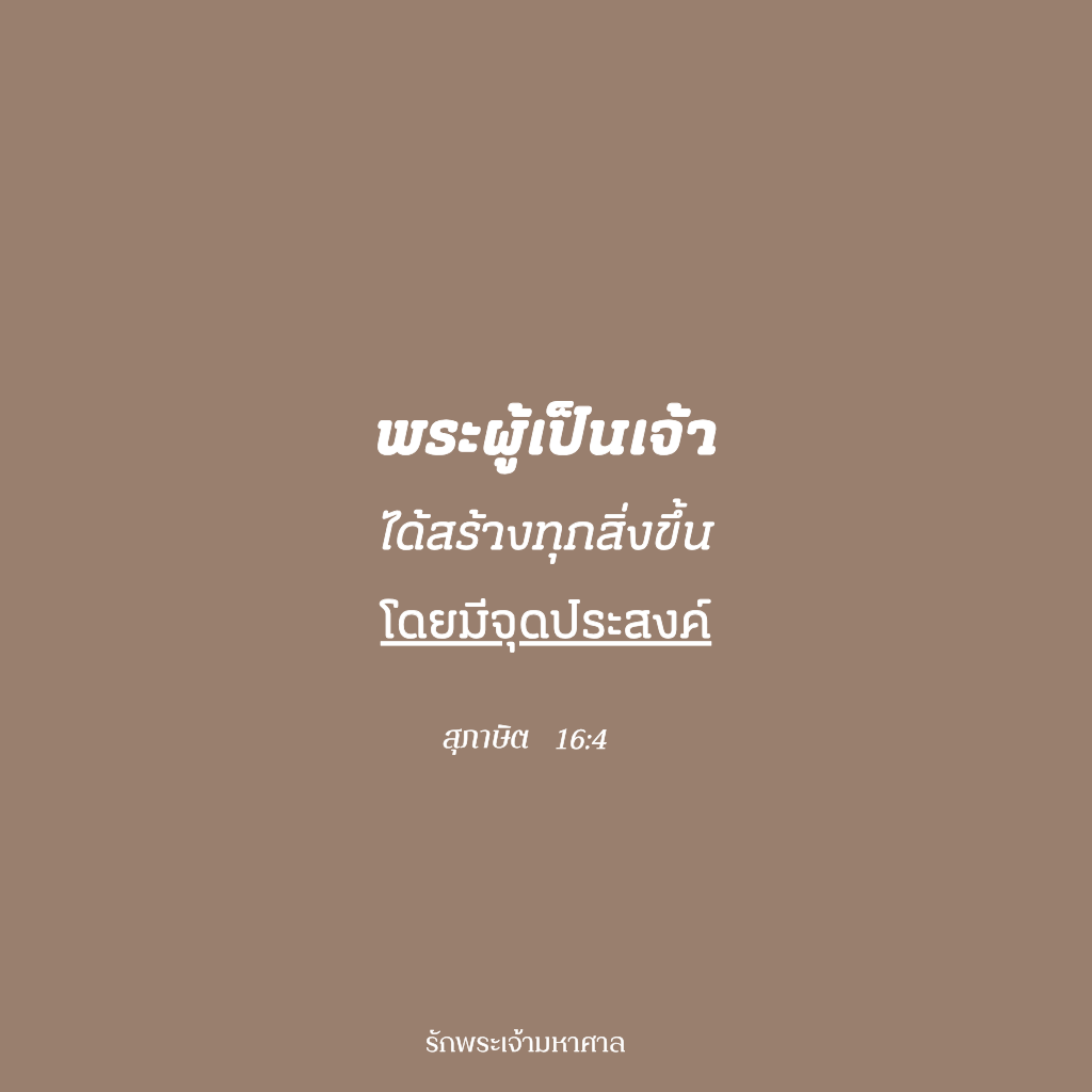 เรามักสงสัยว่า ทำไมความชั่วร้ายยังคงมีอยู่? ทำไมพระเจ้าจึงยอมให้มีความมืดเช่นนี้ในโลก สุภาษิต 16:4 เตือนเราว่า ทุกสิ่งมีจุดประสงค์ แม้แต่การกระทำของคนชั่วร้าย แม้ว่าจะเป็นเรื่องยากที่จะเข้าใจ แต่เราสามารถวางใจได้ว่า ด้วยสติปัญญาอันไม่มีที่สิ้นสุดของพระเจ้า พระองค์กำลังถักทอทุกสิ่ง ทั้งดีและร้าย เข้ากับแผนการอันยิ่งใหญ่ของพระองค์ พระองค์ปรารถนาให้ทุกดวงใจหันมาหาพระองค์ แต่พระองค์ก็รู้ด้วยว่าบางคน เช่น ฮามาน จะเลือกการกบฏต่อต้านมากกว่าการกลับใจ