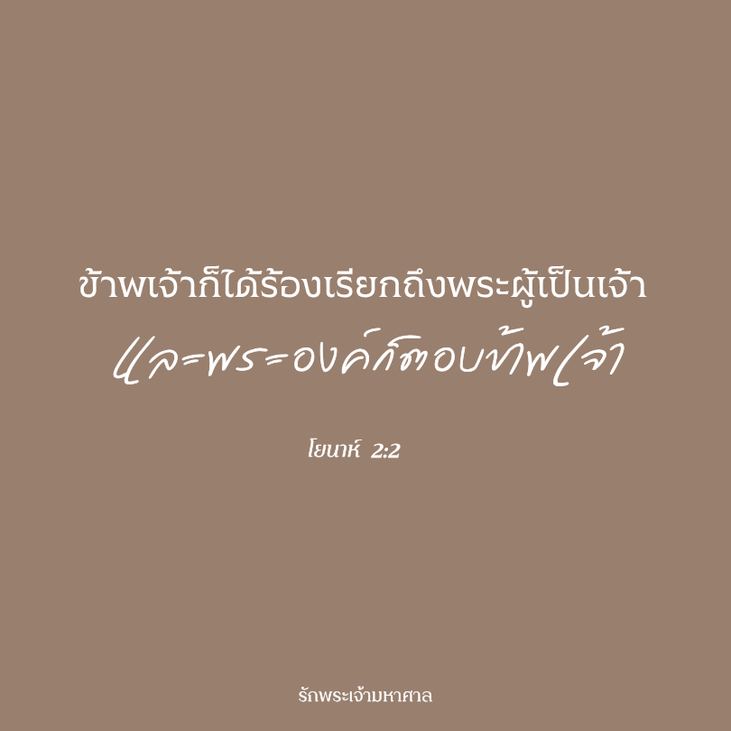 คำอธิษฐานของโยนาห์ได้ปรับจิตใจของเขาให้กลับมาหาพระเจ้าอีกครั้ง เพื่อเขาจะพร้อมที่จะเดินตามการทรงเรียกของพระเจ้าที่ให้เขาไปยังเมืองนีนะเวห์ ขอให้คำอธิษฐานของคุณในวันนี้นำสันติสุขและความไว้วางใจในที่เดียวที่จะพบชีวิตที่แท้จริงได้นั่นคือ “ในพระคริสต์” เช่นเดียวกับเรื่องราวของโยนาห์ที่ยังไม่จบ เรื่องราวของคุณก็ยังไม่จบเช่นกัน