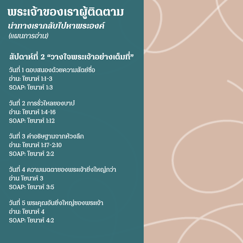 เราขอขอบคุณ รักพระเจ้ามหาศาล ที่ให้แผนนี้ สำหรับข้อมูลเพิ่มเติมโปรดไปที่ thai.lovegodgreatly.com