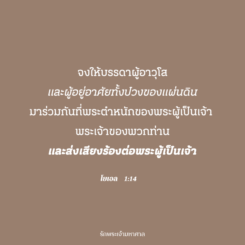*ในการศึกษาพระคัมภีร์ เราใช้วิธีศึกษาแบบ SOAP ซึ่งย่อมาจาก S (Scripture) พระคัมภีร์, O (Observation) สังเกต, A (Application) ประยุกต์ใช้ และ P (Prayer) อธิษฐาน