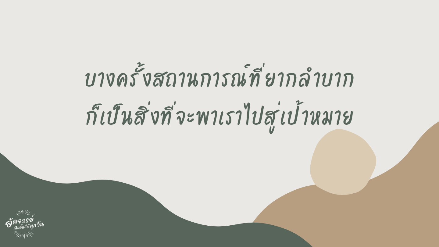 ฉันได้เรียนรู้ผ่านสิ่งนี้ว่า… บางครั้งสถานการณ์ที่ยากลำบากในชีวิตของเรา ก็เป็นสิ่งที่จะพาเราไปสู่เป้าหมายจริงๆของเราได้ ฉันอาจผิดหวังในชั่วขณะหนึ่ง แต่ความผิดหวังนั้นพาฉันมาอยู่ในแผนการอันประเสริฐของพระเจ้า