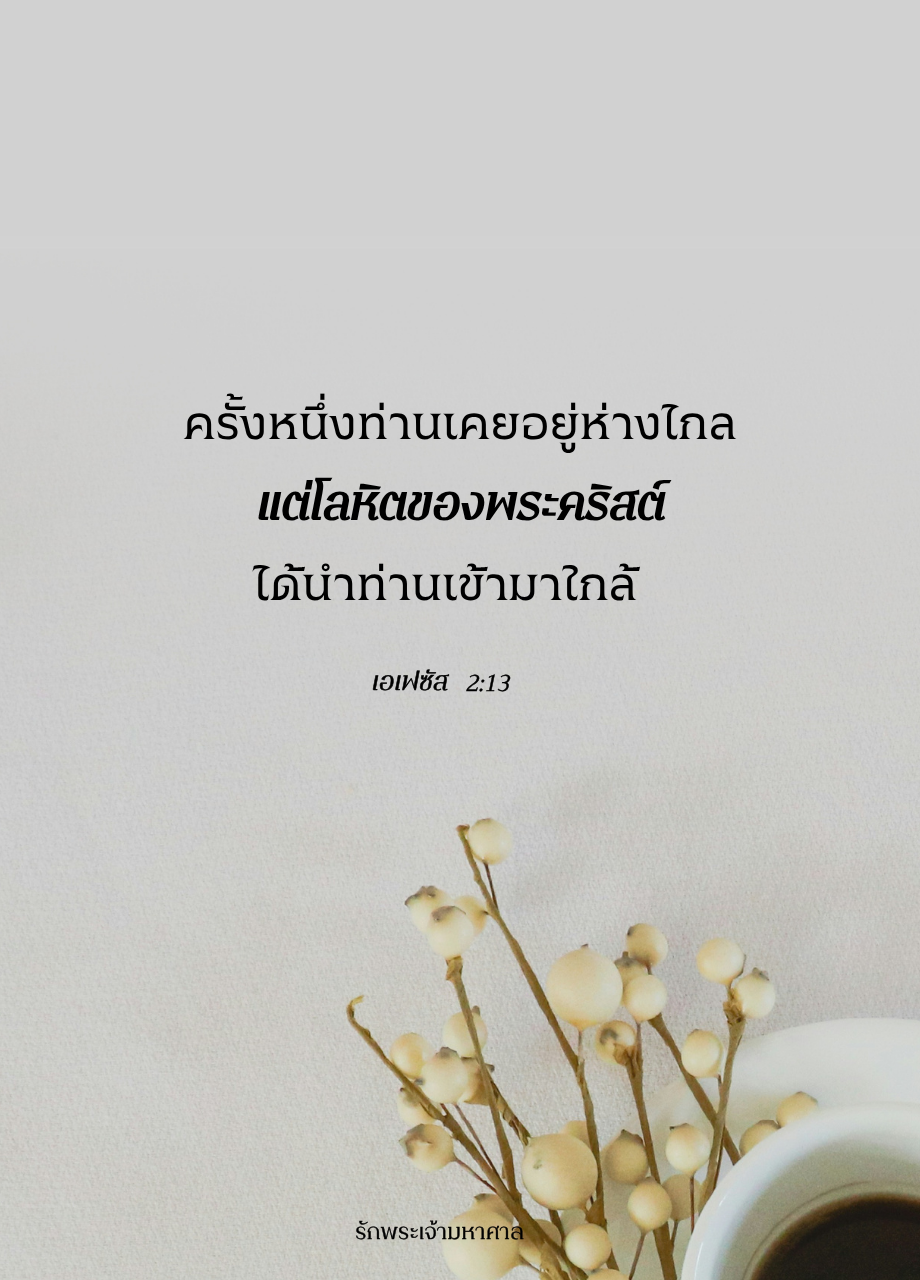 วันนี้ เราเป็นผู้รับผลประโยชน์จากพระบัญชานั้น! พวกเราที่เคยอยู่ห่างไกลจากพระเจ้าเพราะบาป ได้ถูกนำเข้ามาใกล้โดยพระโลหิตของพระเยซู ตอนนี้พวกเราเป็นคนวงในแล้ว! ไม่มีคนสองกลุ่มอีกต่อไป แต่พวกเราถูกรวมเข้าเป็นหนึ่งเดียวกันในฐานะประชากรของพระเจ้าเพราะพระเยซู