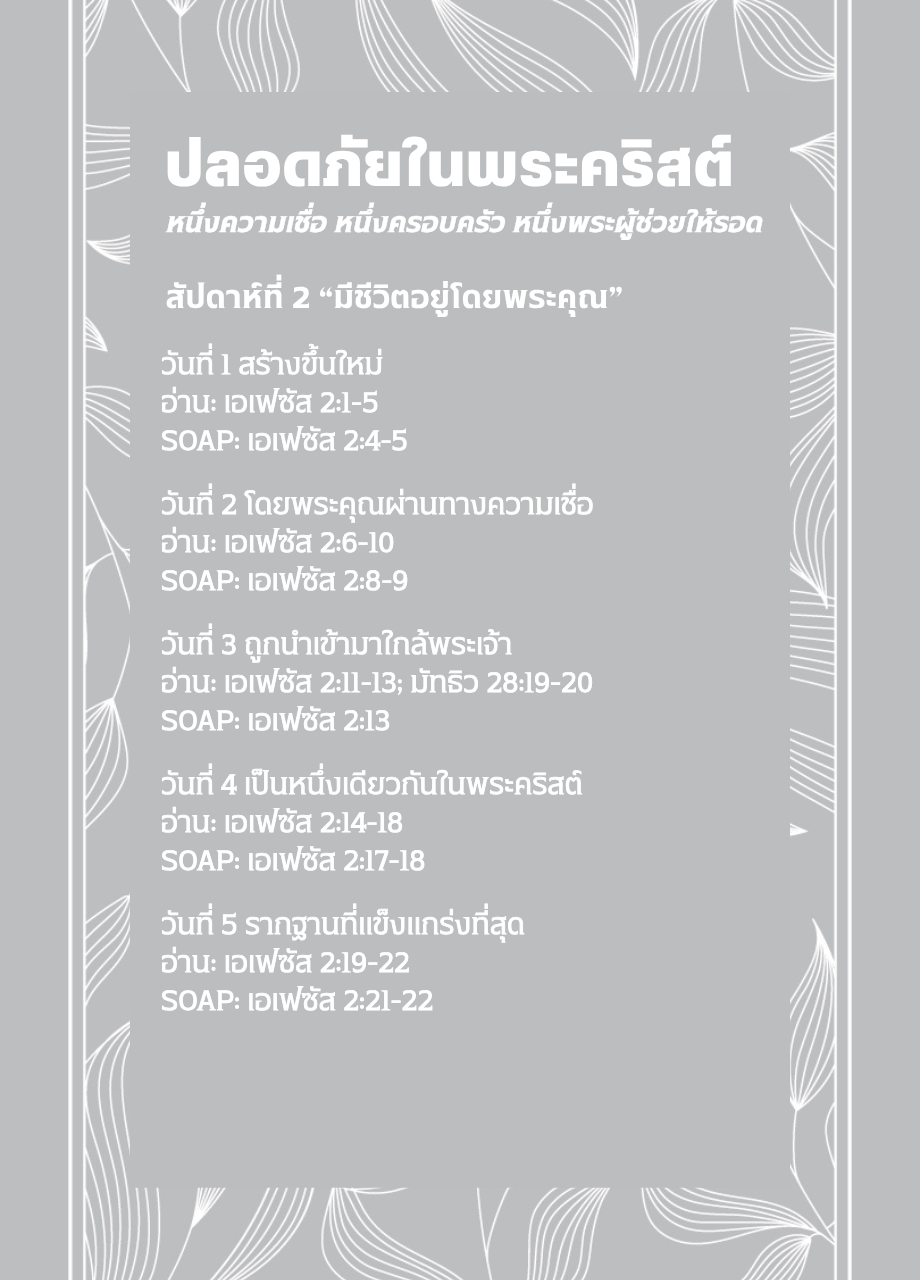 บ่อยครั้งโลกมักบอกเราว่า เราต้องทำงานหรือทำตัวให้ดีเพื่อจะได้รับความรักจากผู้อื่น แต่คริสต์ศาสนากลับพลิกแนวคิดนี้โดยสิ้นเชิง ความรักของพระเจ้า ไม่ใช่สิ่งที่เราสามารถหามาได้ด้วยตัวเอง หรือเป็นสิ่งที่เราสามารถสูญเสียได้ แต่ความรักของพระเจ้าเป็นของขวัญแห่งพระคุณที่เราสามารถสัมผัสได้ผ่านทางความเชื่อในพระเยซูคริสต์ นี่คือรากฐานของชีวิตคริสเตียน เป็นมุมมองที่เราใช้มอง และมีปฏิสัมพันธ์กับผู้คนทั้งภายในและภายนอกคริสตจักร เราปลอดภัยและมั่นคงในพระเยซู