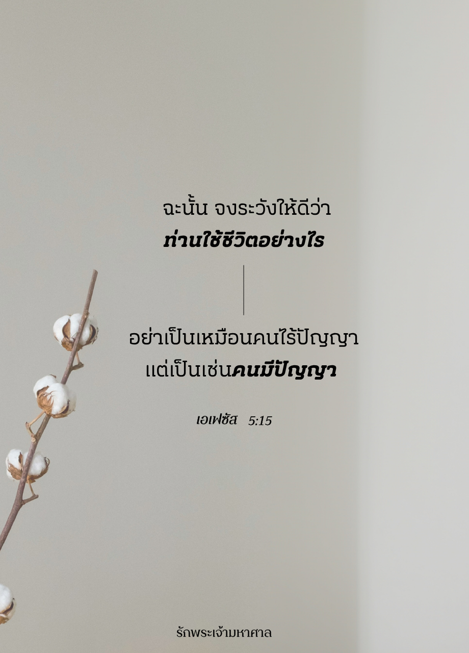 อธิษฐาน พระเยซู ขอบพระคุณพระองค์ที่เป็นพระเจ้าแห่งสติปัญญาทั้งสิ้น โปรดช่วยข้าพระองค์ให้ดำเนินชีวิตอย่างชาญฉลาด มิใช่ชีวิตที่ไร้ปัญญา ข้าพระองค์อธิษฐานขอให้พระองค์ล้อมรอบข้าพระองค์ด้วยพี่น้องร่วมความเชื่อผู้ที่จะช่วยข้าพระองค์ในการยอมเชื่อฟังพระองค์ทุกวัน อาเมน