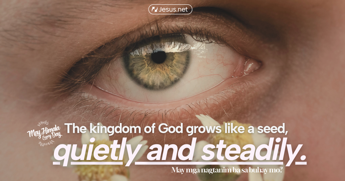 Sinabi pa ni Hesus, “Ang paghahari ng Diyos ay maihahalintulad dito: May isang taong naghasik ng binhi sa kanyang bukid. Habang nagtatrabaho siya sa araw at natutulog sa gabi, ang mga binhing inihasik niya ay tumutubo at lumalago, ngunit hindi niya alam kung paano ito nangyayari. Ang lupa mismo ang nagpapatubo at nagpapabunga sa pananim; lilitaw muna ang usbong, tutubo ang tangkay, at pagkatapos ay mahihitik ng butil ang uhay. At kapag hinog na ang butil, gagapasin na ito, dahil panahon na ng pag-aani.” (Marcos 4:26-29 ASND)
