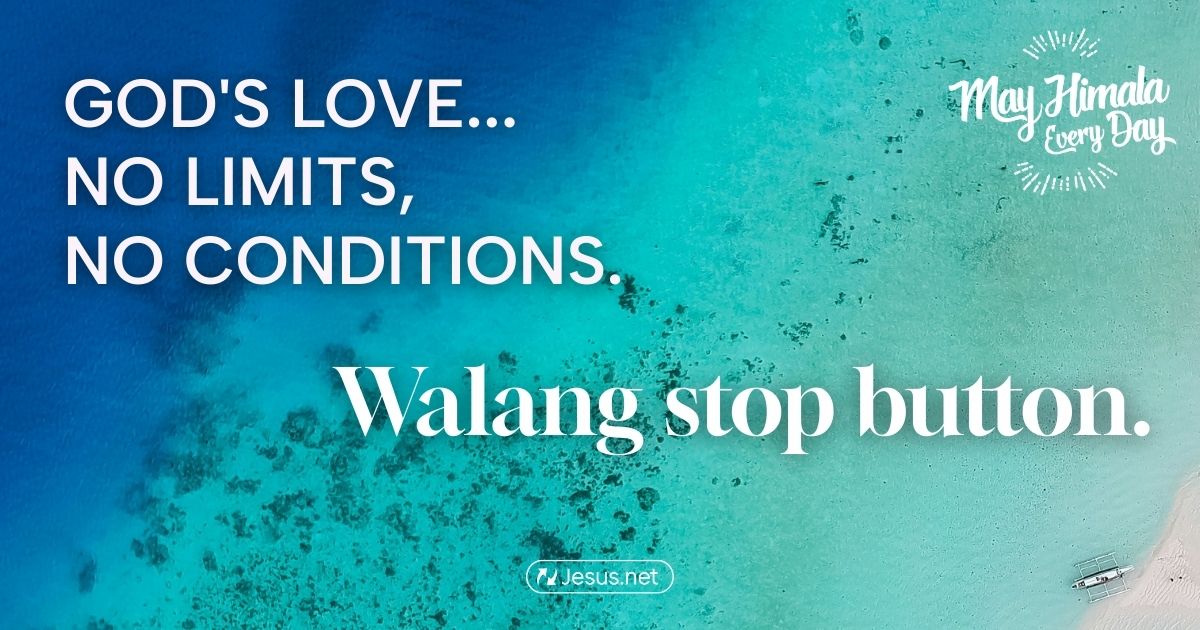 Ang ganda niyang pakinggan, isang katotohanan about God’s love for us. Can you see the descriptions? Na ang pag-ibig ay makapangyarihan gaya ng kamatayan, hindi ito mapipigilan, at parang apoy na lumalagablab. Tulad ng pag-ibig ng Panginoon sa atin, walang makakapigil dito sa paghabol sa atin. That just shows—nothing can separate us from His love, na kahit laksa-laksang tubig ay hindi makakapigil dito. That’s good news!