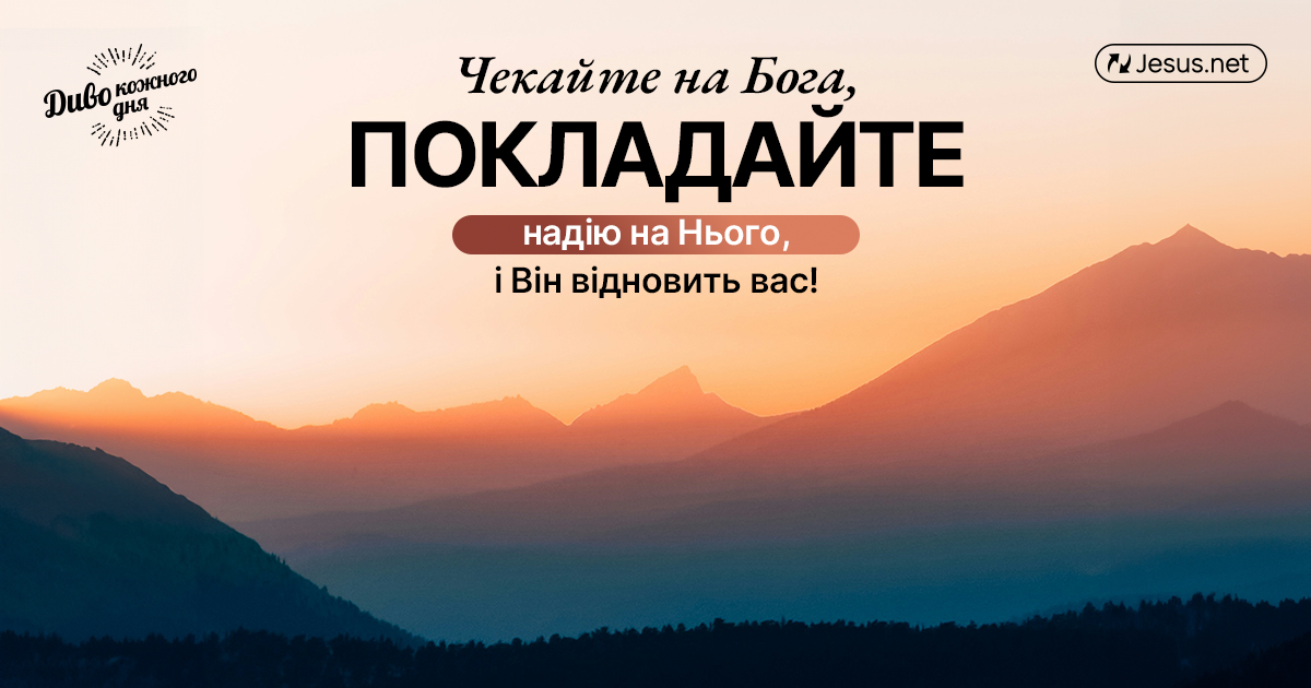 «А ті, хто надію складає на Господа, силу відновлять, крила підіймуть, немов ті орли, будуть бігати і не потомляться, будуть ходити і не помучаться» (Ісая 40:31 Biblegateway Ukranian Bible).