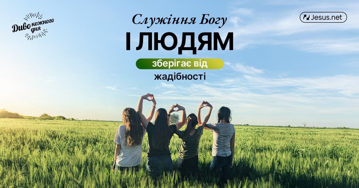 Служіння береже нас від жадібності. Служіння допомагає зберігати правильне ставлення до життя! Служіння — це любов, подібно до тієї, що являв Ісус. І оскільки: «Отець любить Сина, і показує все, що Сам робить, Йому. І покаже Йому діла більші від цих, щоб ви дивувались» (Від Івана 5:20), ми знаємо, що Бог Отець є також слугою!